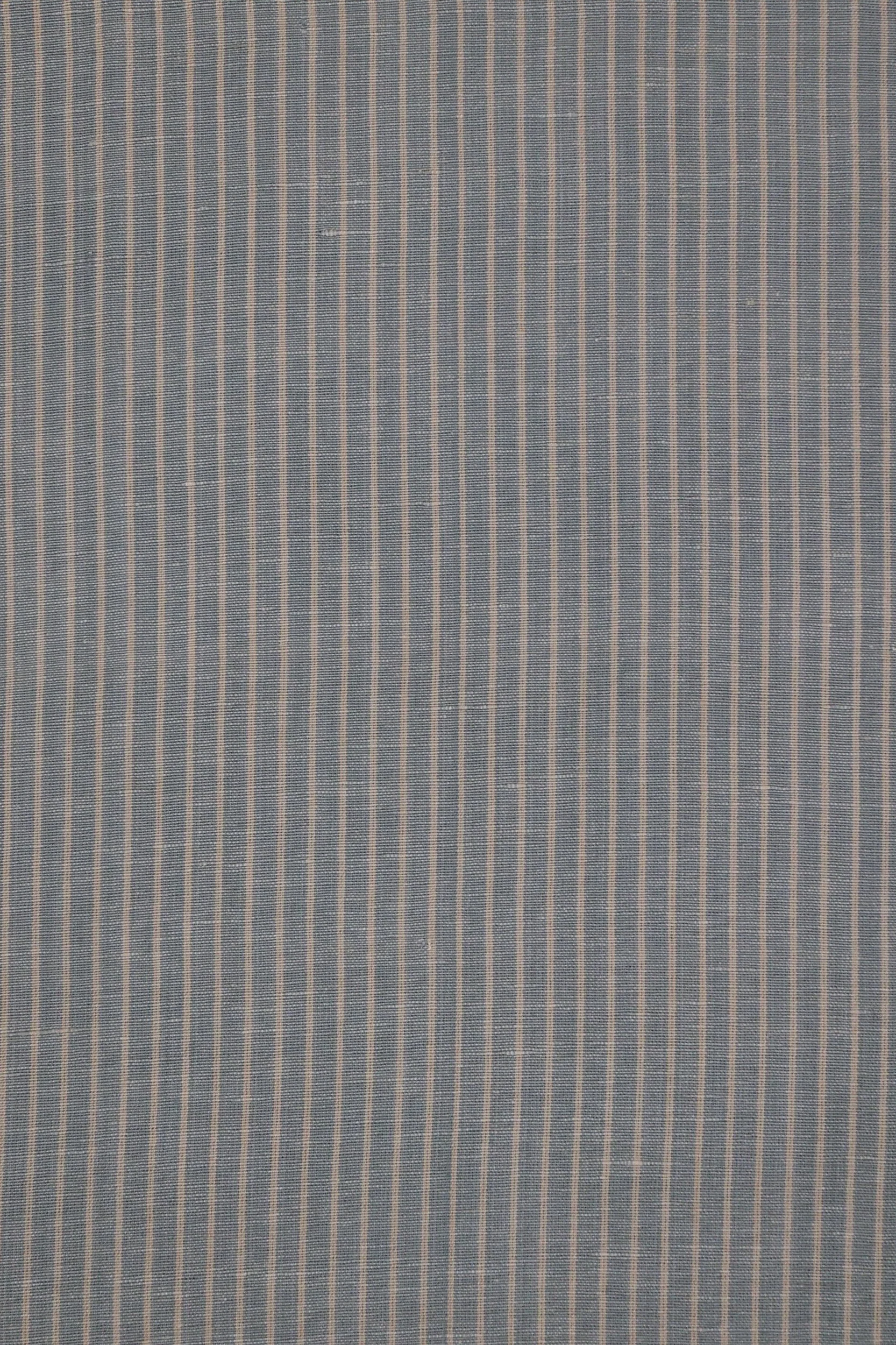 A fabric of equilibrium: fine blue lines moving across an ivory field, their rhythm measured like the beat of the loom itself. The warp’s bamboo yarn lends a quiet luster, while linen in the weft keeps the hand dry and grounded. The surface, pressed smooth through felt ironing, catches light like still water.